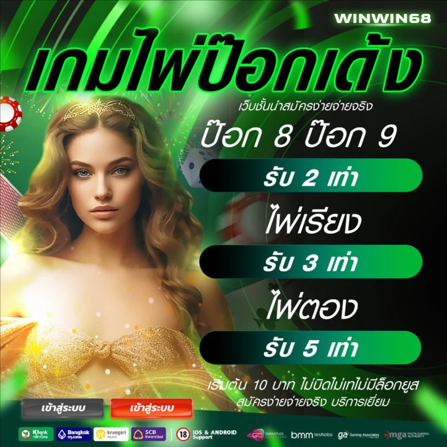 WINWIN68 เป็นแพลตฟอร์มพนันออนไลน์ที่ให้บริการเกมคาสิโน สล็อต กีฬา และเกมพนันรูปแบบต่างๆ ครบวงจร ด้วยระบบที่ทันสมัย รองรับการเล่นผ่านมือถือและคอมพิวเตอร์ มีระบบฝาก-ถอนอัตโนมัติรวดเร็วตลอด 24 ชั่วโมง