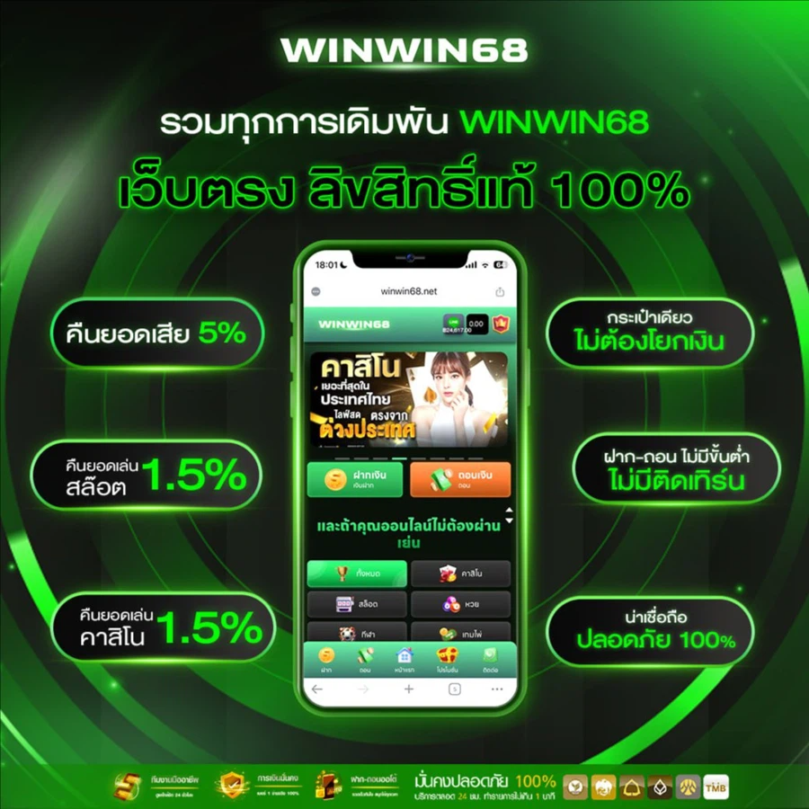 เพื่อนๆ หลายคนอาจสงสัยว่าทำไม WINWIN68 ถึงได้รับความนิยมขนาดนี้ คำตอบง่ายๆ คือ เว็บไซต์นี้มีจุดเด่นที่ครบครัน ทั้งระบบฝาก-ถอนอัตโนมัติที่รวดเร็วภายใน 30 วินาที การรองรับธนาคารชั้นนำทุกแห่ง และที่สำคัญคือมีความมั่นคงทางการเงินสูง จ่ายจริงไม่มีโกง